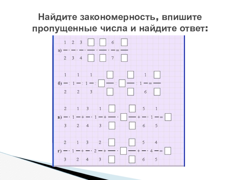 Слайд 3Найдите закономерность, впишите пропущенные числа и найдите ответ: