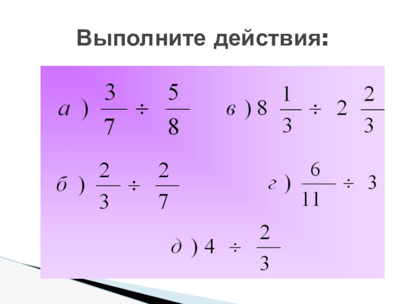 Слайд 7Выполните действия: