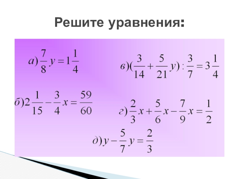 Слайд 8Решите уравнения: