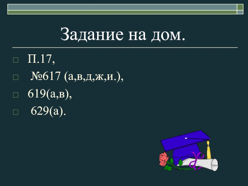 Задание на дом. П.17, №617 (а,в,д,ж,и.),619(а,в), 629(а).