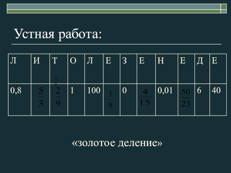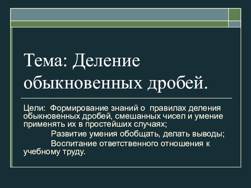 Цели: Формирование знаний о правилах деления обыкновенных дробей,