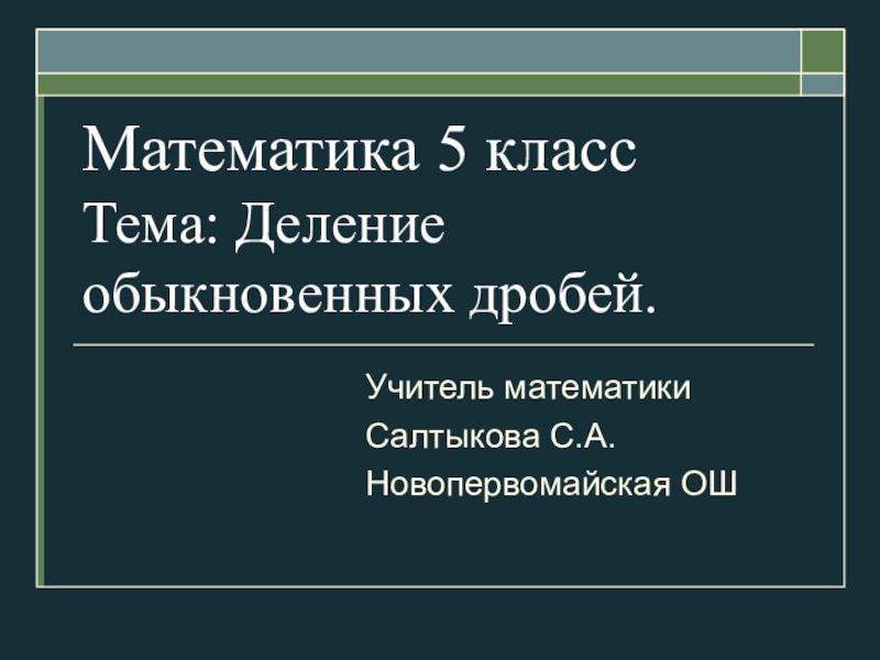Математика 5 класс Тема: Деление обыкновенных дробей.Учитель математикиСалтыкова С.А.Новопервомайская ОШ