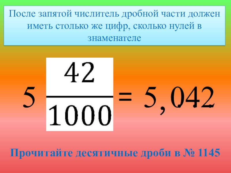 Прочитайте десятичные дроби в № 1145
