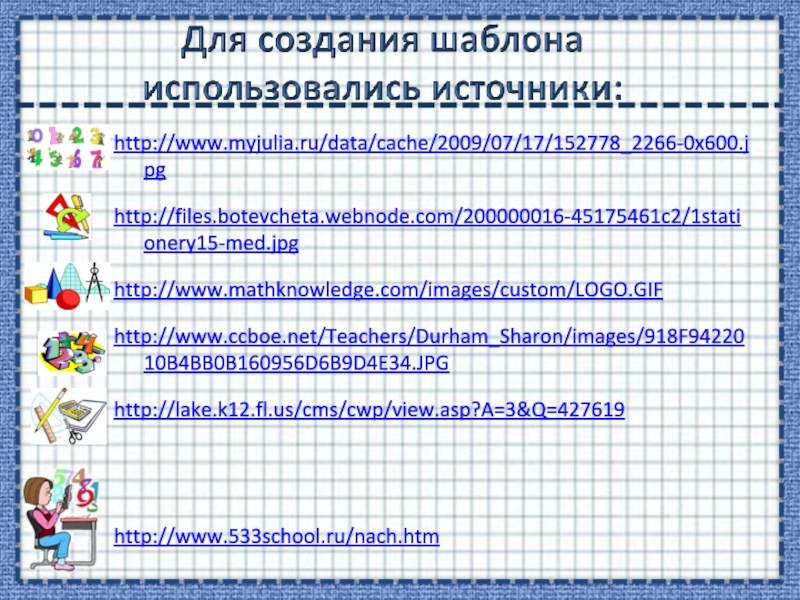 Это сайт презентаций, где можно хранить и обмениваться своими презентациями, докладами, проектами, шаблонами в формате PowerPoint с другими пользователями. Мы помогаем школьникам, студентам, учителям, преподавателям хранить и обмениваться учебными материалами.