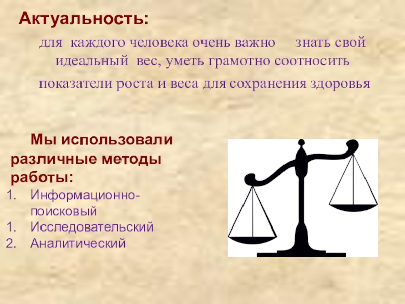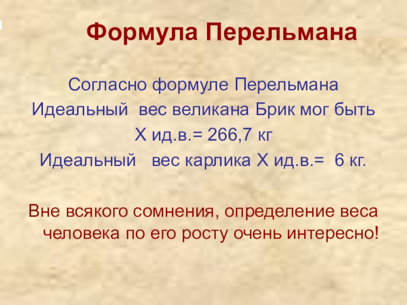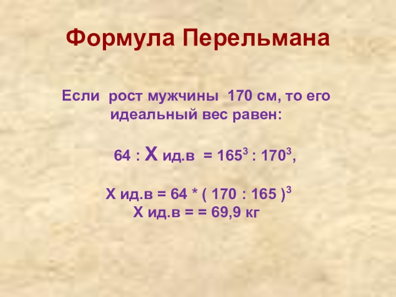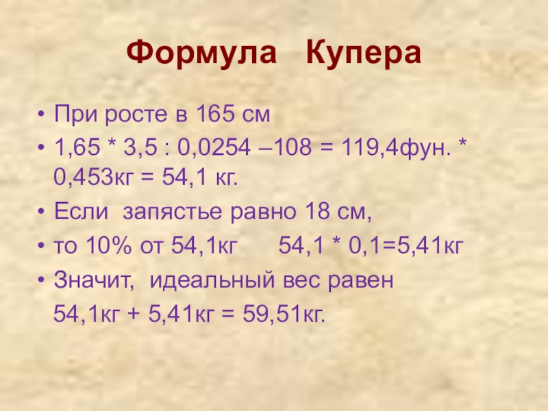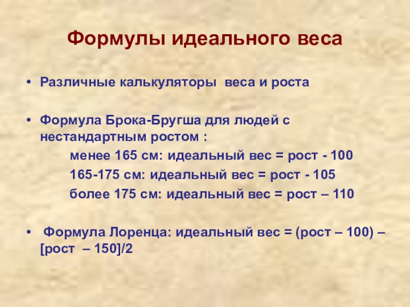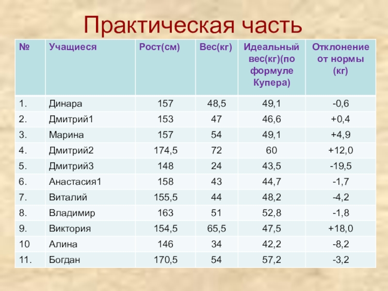 провести анализ исходных данных по формулам идеального веса Перельмана и Купера,