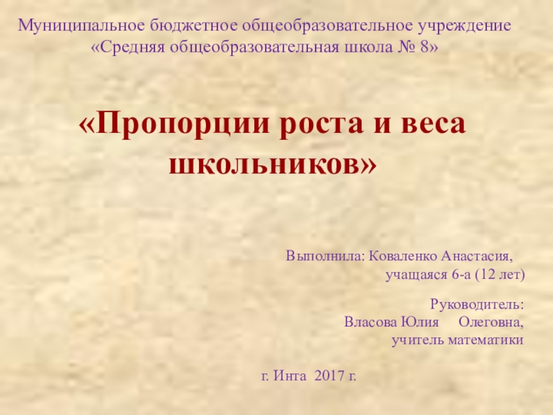 изучить пропорции роста и веса учащихся на основе медицинского осмотра,