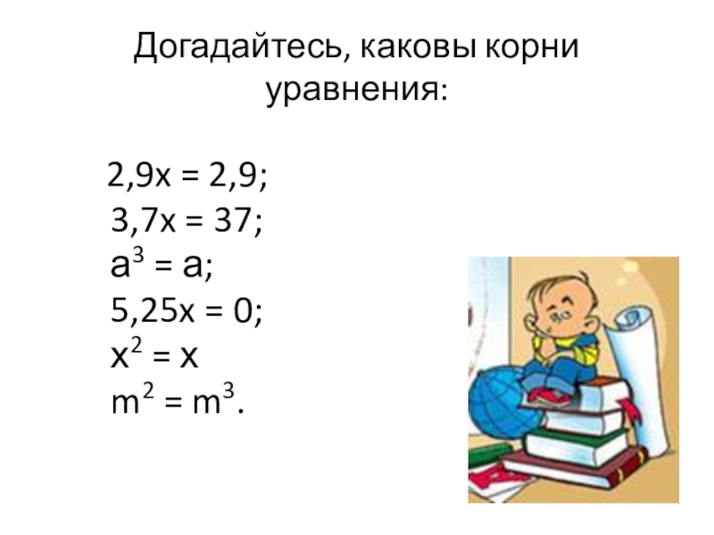 Догадайтесь, каковы корни уравнения: 2,9x = 2,9;               3,7x = 37;
