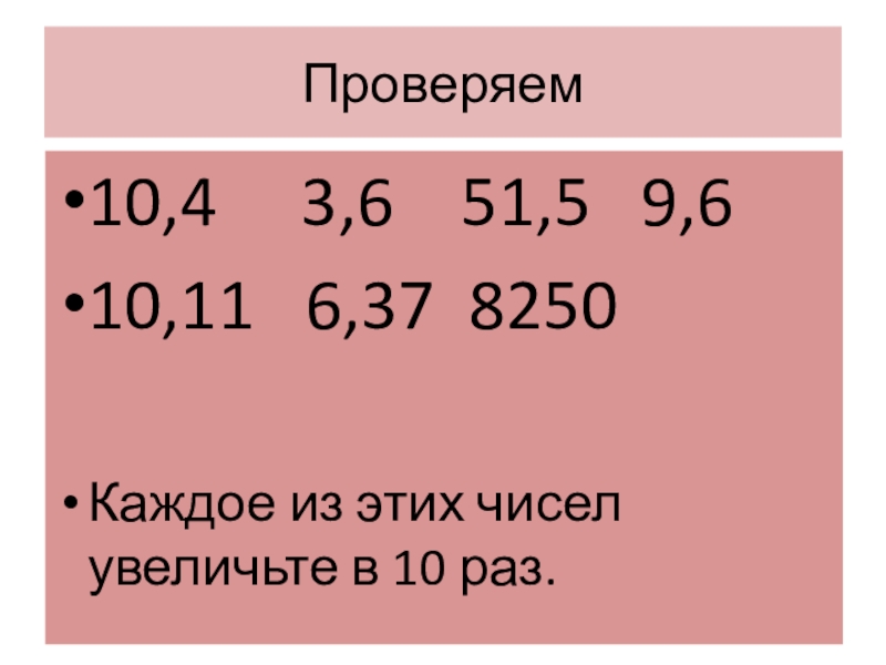 Проверяем10,4   3,6  51,5  9,6 10,11  6,37 8250  Каждое из этих чисел