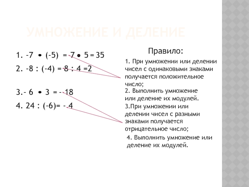 3.При умножении или делении чисел с разными знаками получается отрицательное число;