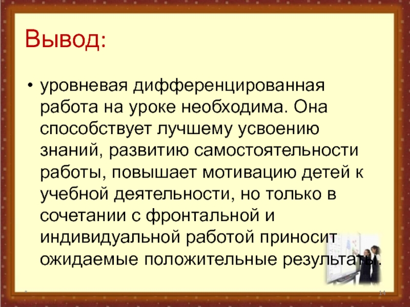 уровневая дифференцированная работа на уроке необходима. Она способствует лучшему усвоению знаний,
