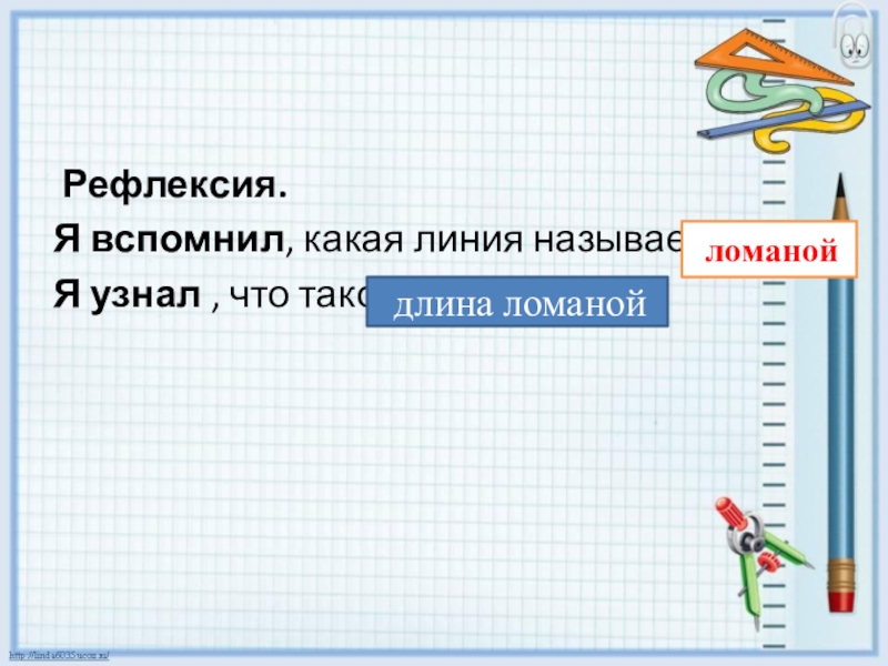 Рефлексия.Я вспомнил, какая линия называетсяЯ узнал , что такое  ломаной длина ломаной