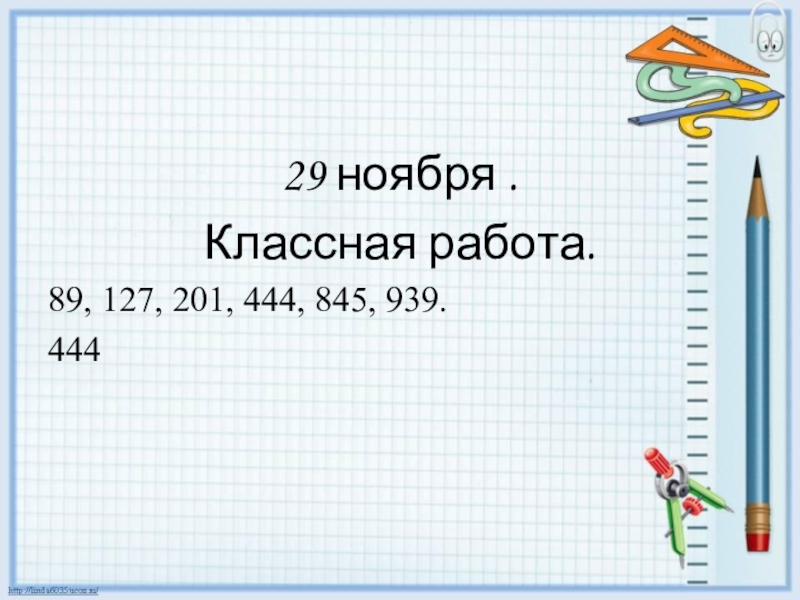 29 ноября .Классная работа.89, 127, 201, 444, 845, 939.444