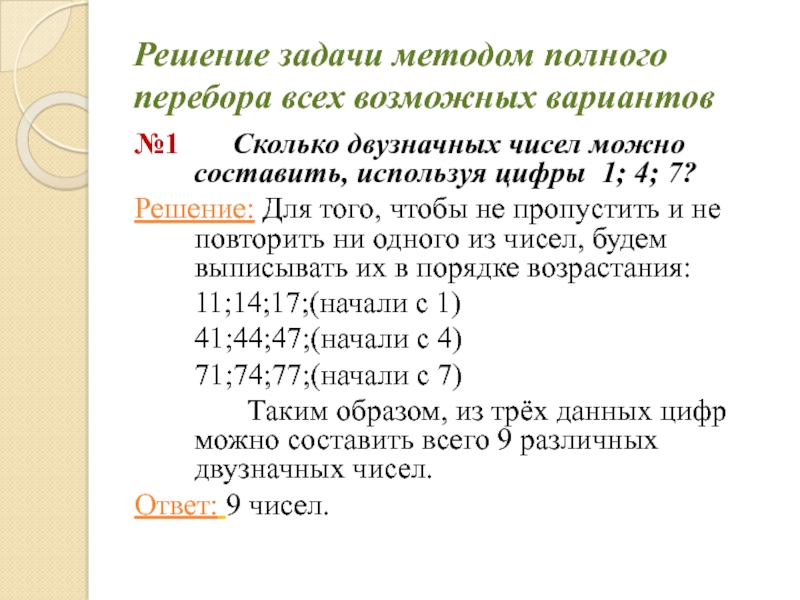 Слайд 7Решение задачи методом полного перебора всех возможных вариантов