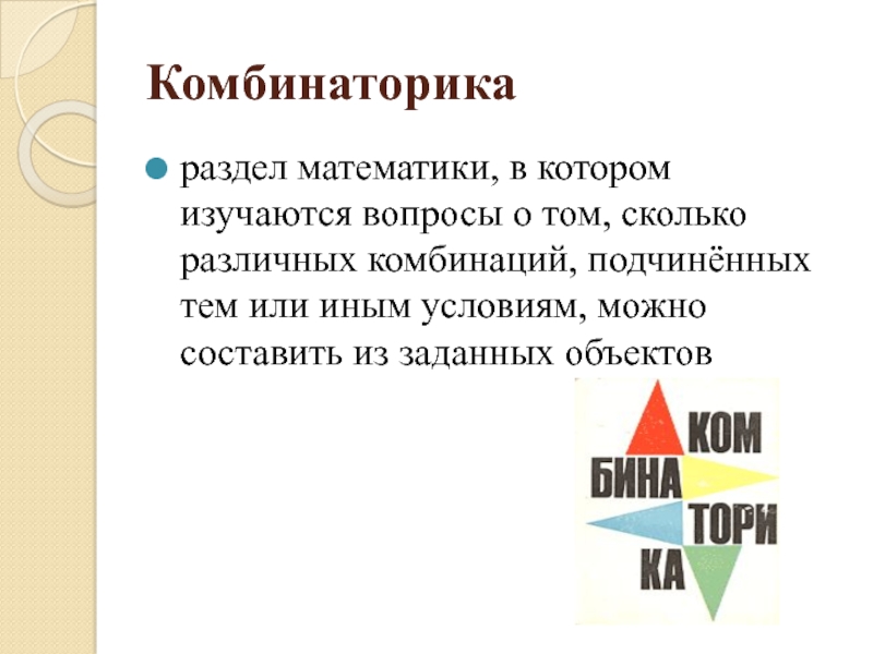 Слайд 3КОМБИНАТОРНАЯ ЗАДАЧА –