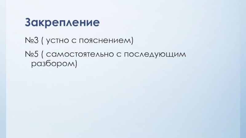 Закрепление№3 ( устно с пояснением)№5 ( самостоятельно с последующим разбором)