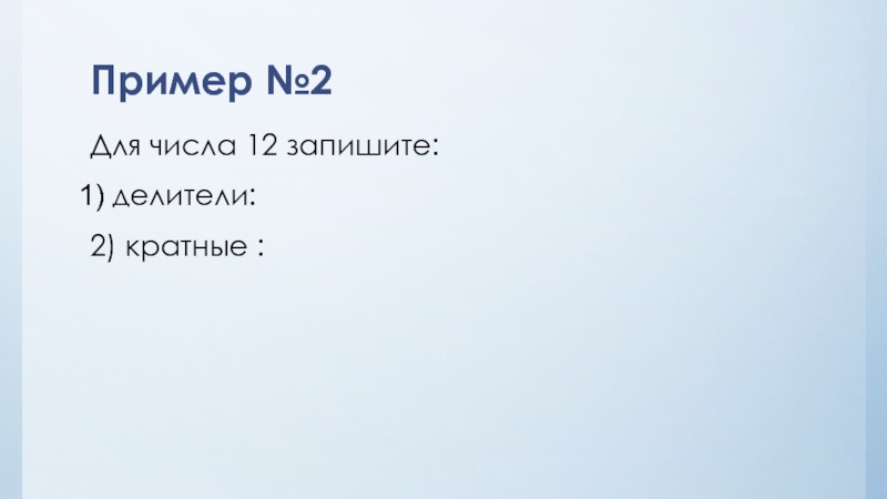 Пример №2Для числа 12 запишите:делители:2) кратные :