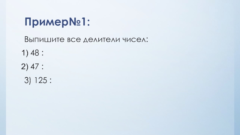 Пример№1:Выпишите все делители чисел:48 : 47 : 3) 125 :