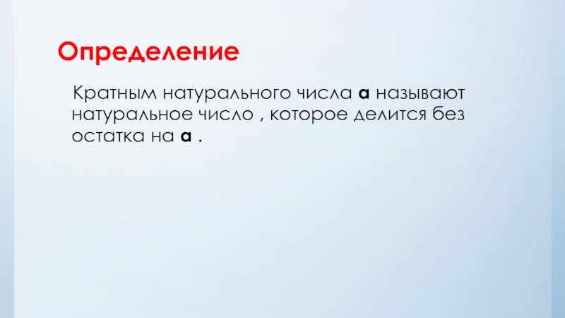 Определение  Кратным натурального числа a называют натуральное число , которое делится без остатка на a .