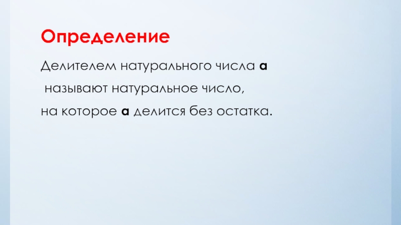 ОпределениеДелителем натурального числа a называют натуральное число,на которое a делится без остатка.