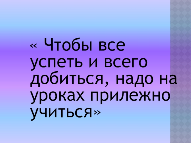 « Чтобы все успеть и всего добиться, надо на уроках прилежно учиться»