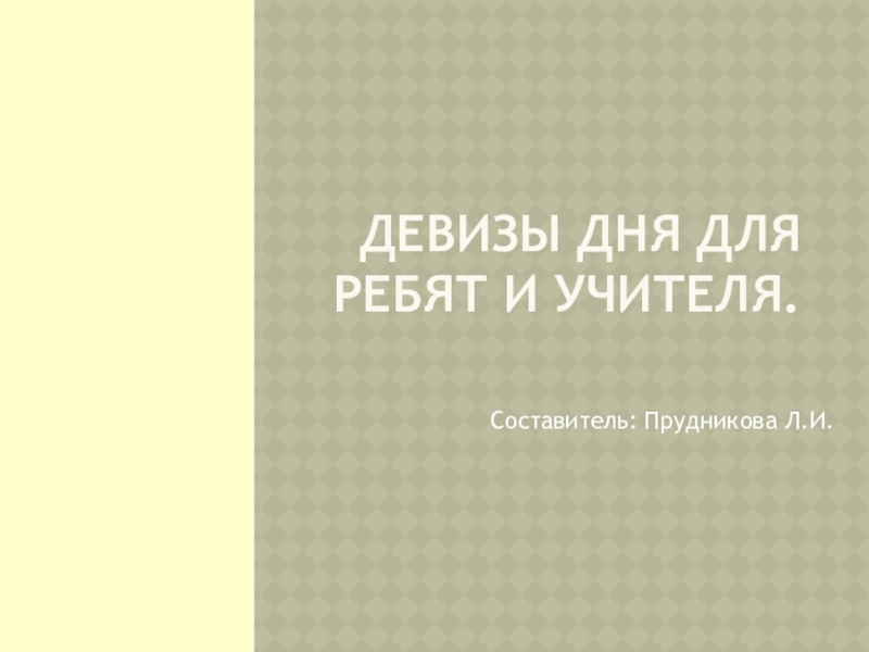 ДЕВИЗЫ ДНЯ ДЛЯ РЕБЯТ И УЧИТЕЛЯ.Составитель: Прудникова Л.И.