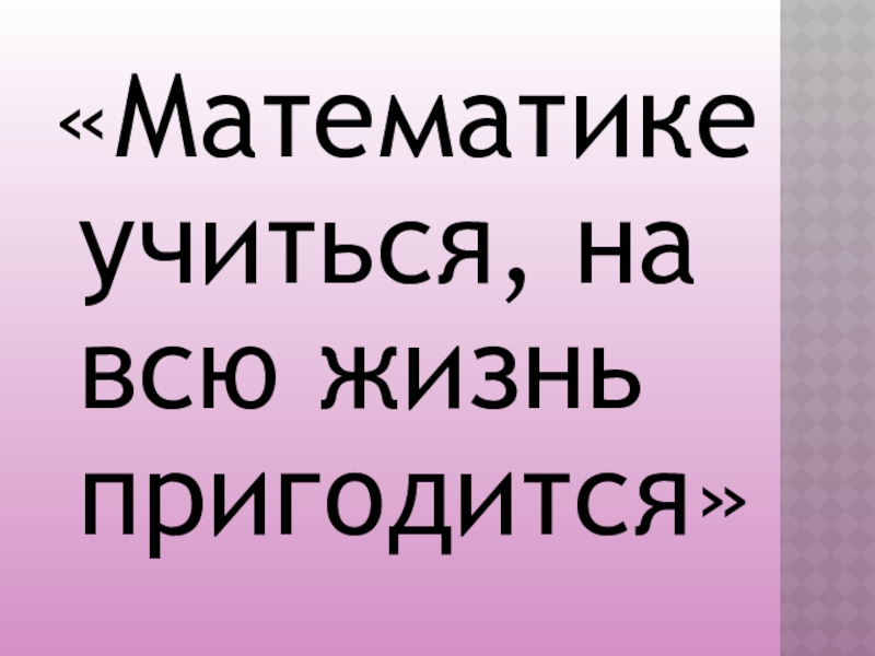 Слайд 3«Математике учиться, на всю жизнь пригодится»