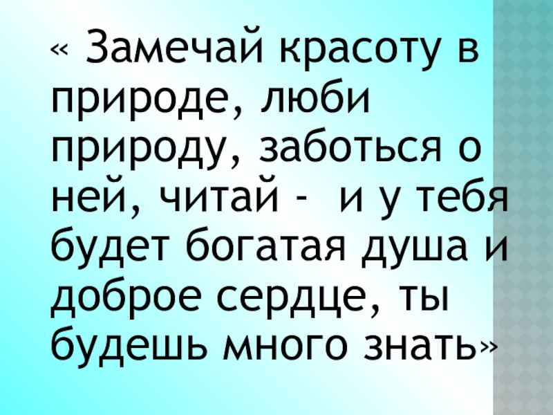 « Замечай красоту в природе, люби природу, заботься о ней, читай - и у тебя будет