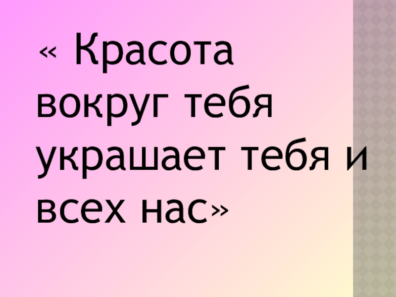 Слайд 6 « Красота вокруг тебя украшает тебя и всех нас»