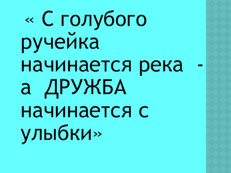 « С голубого ручейка начинается река - а ДРУЖБА начинается с улыбки»
