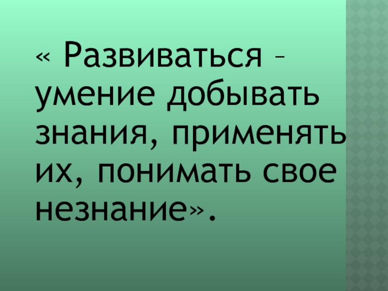 « Развиваться – умение добывать знания, применять их, понимать свое незнание».