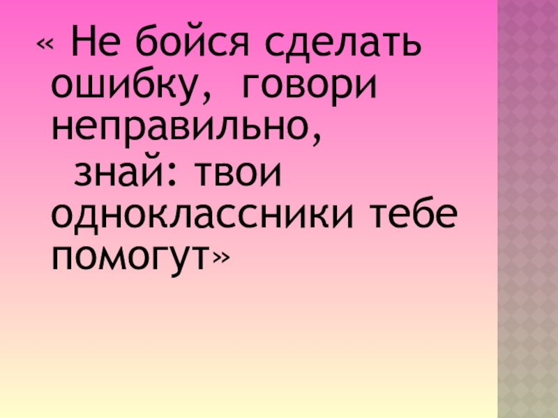 « Не бойся сделать ошибку, говори неправильно,  знай: твои одноклассники тебе помогут»