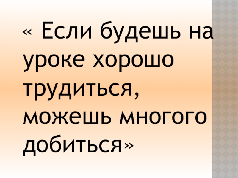 Слайд 7 « Если будешь на уроке хорошо трудиться, можешь многого добиться»