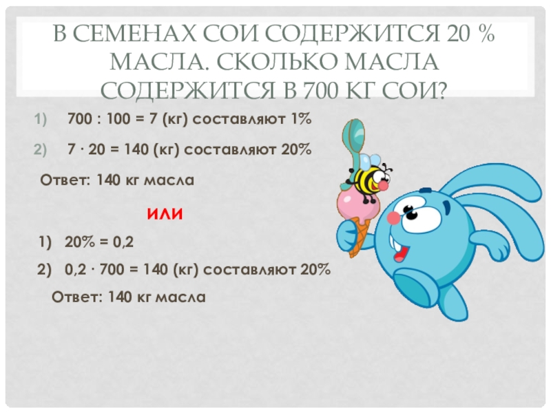 0,2 ∙ 700 = 140 (кг) составляют 20%