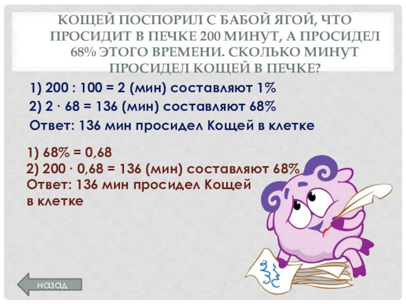 2) 2 ∙ 68 = 136 (мин) составляют 68%