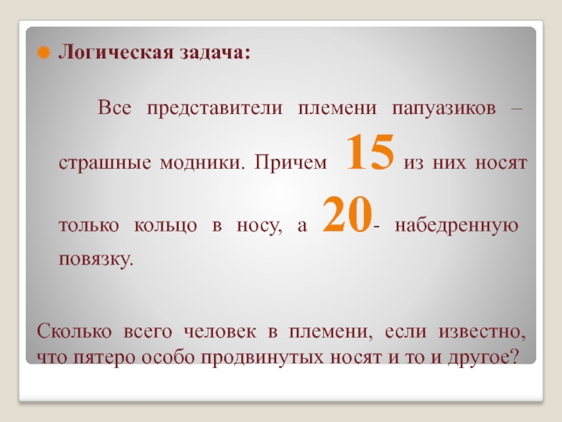 Слайд 7Сколько всего человек в племени, если известно, что пятеро особо продвинутых