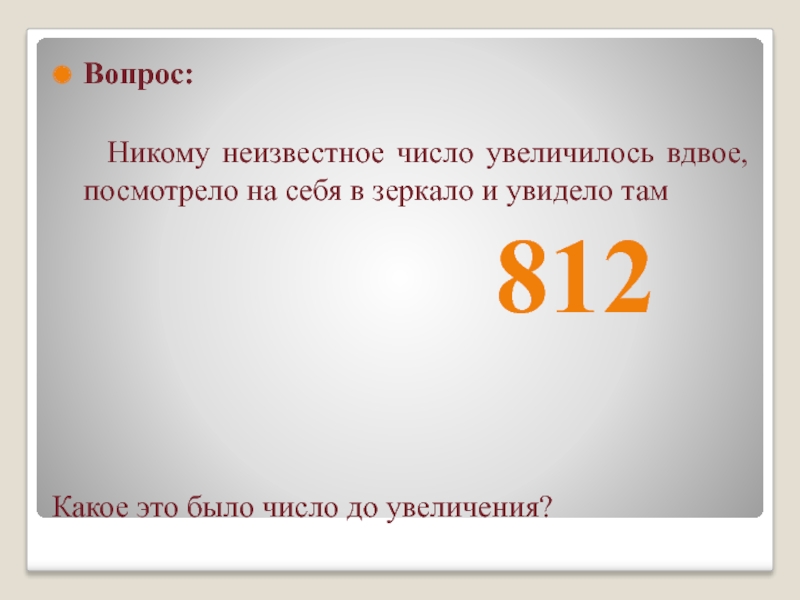 Какое это было число до увеличения?Вопрос:    Никому неизвестное число увеличилось вдвое, посмотрело на себя
