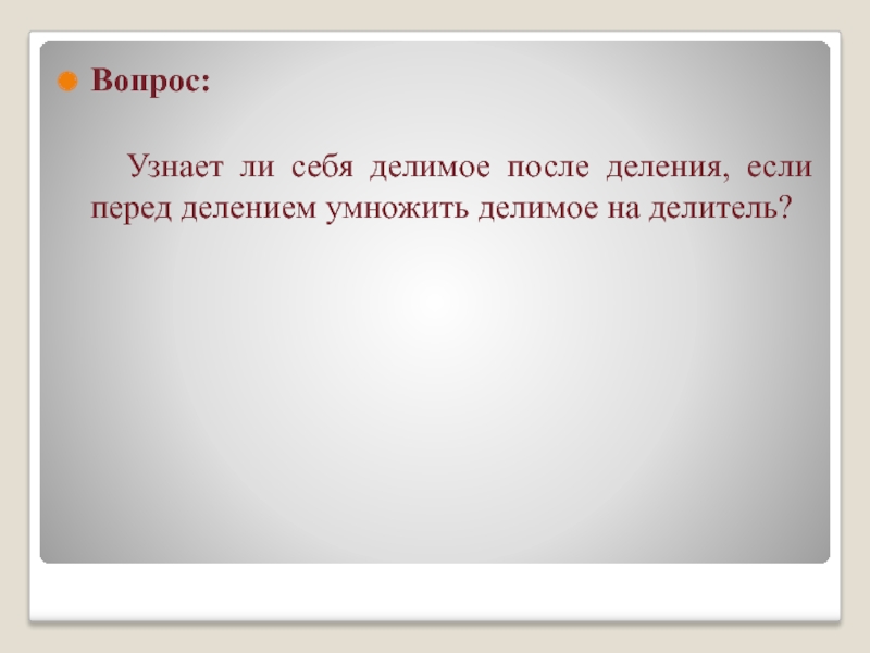 Вопрос:  Узнает ли себя делимое после деления, если перед делением умножить делимое на делитель?
