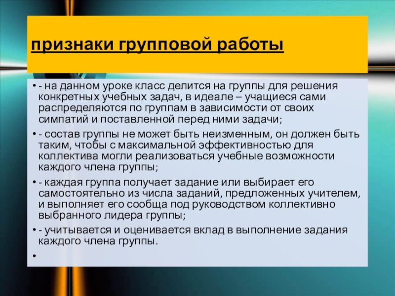 Слайд 3признаки групповой работы
