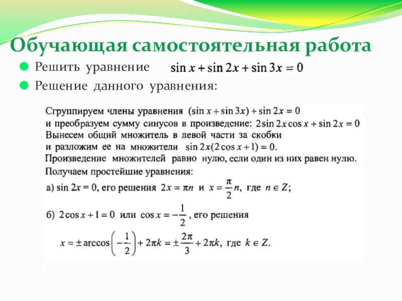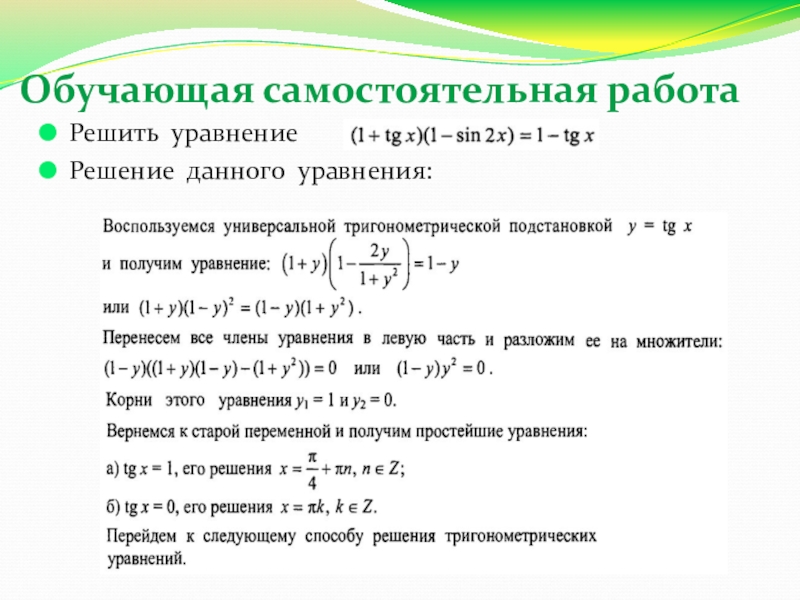 Обучающая самостоятельная работаРешить уравнениеРешение данного уравнения: