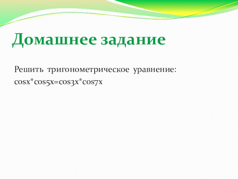 Домашнее заданиеРешить тригонометрическое уравнение: cosx*cos5x=cos3x*cos7x