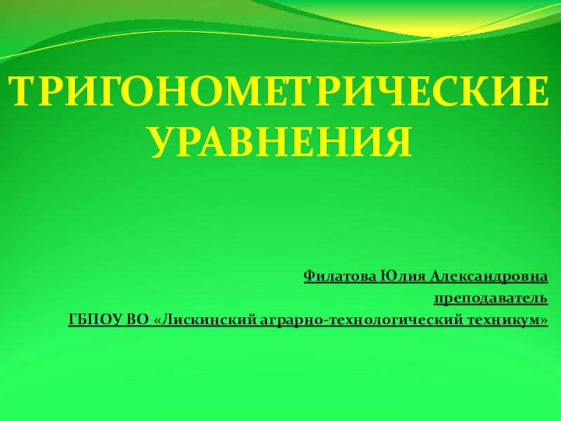 ТРИГОНОМЕТРИЧЕСКИЕ  УРАВНЕНИЯФилатова Юлия Александровнапреподаватель ГБПОУ ВО «Лискинский аграрно-технологический техникум»