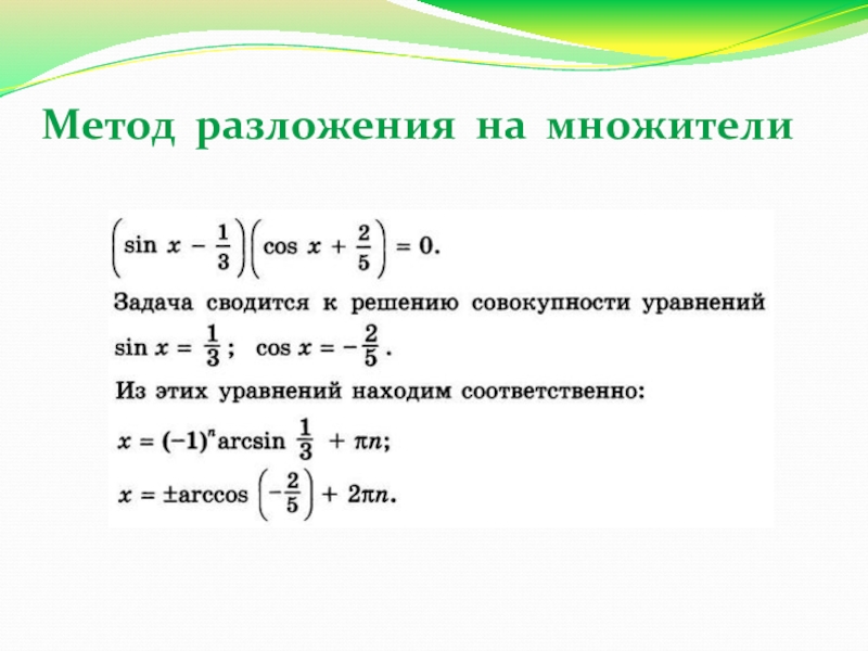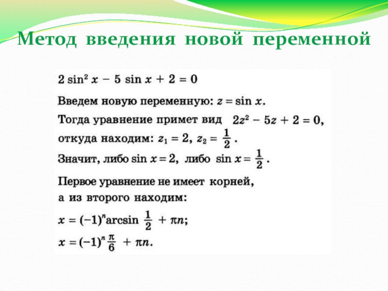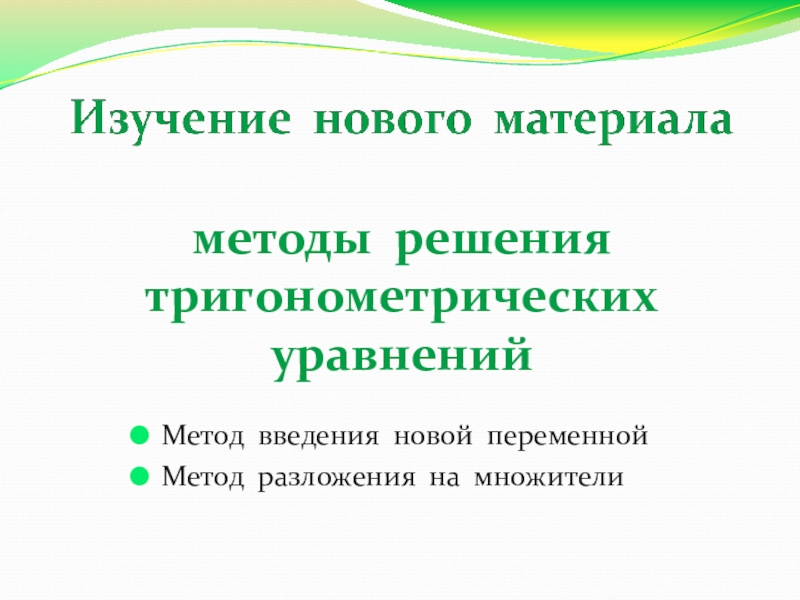 методы решения тригонометрических  уравненийМетод введения новой переменнойМетод разложения на множители