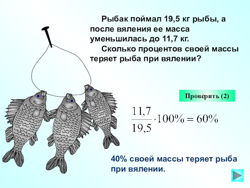 40% своей массы теряет рыба при вялении.