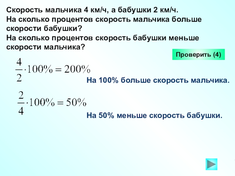 На 100% больше скорость мальчика.