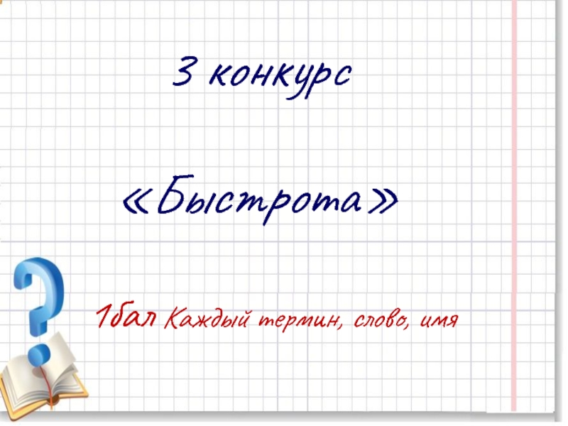 3 конкурс  «Быстрота»    1бал Каждый термин, слово, имя