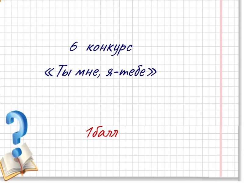 Слайд 236 конкурс «Ты мне, я-тебе» 1балл