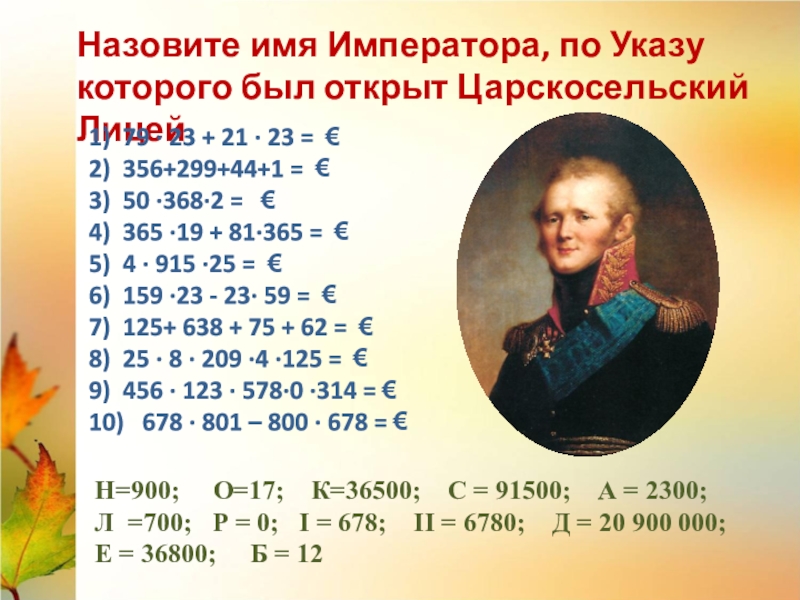 Л =700; Р = 0; I = 678; II = 6780; Д = 20 900 000;