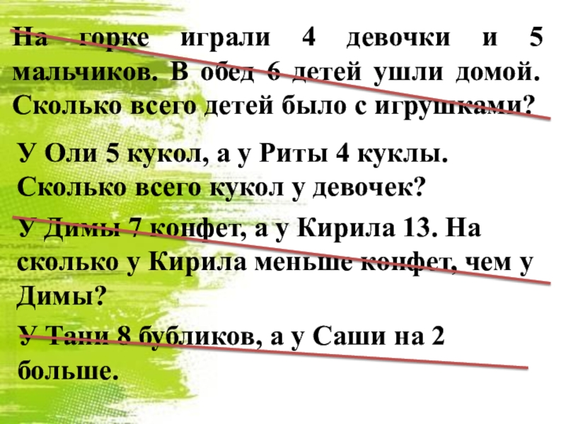 У Оли 5 кукол, а у Риты 4 куклы. Сколько всего кукол у девочек?