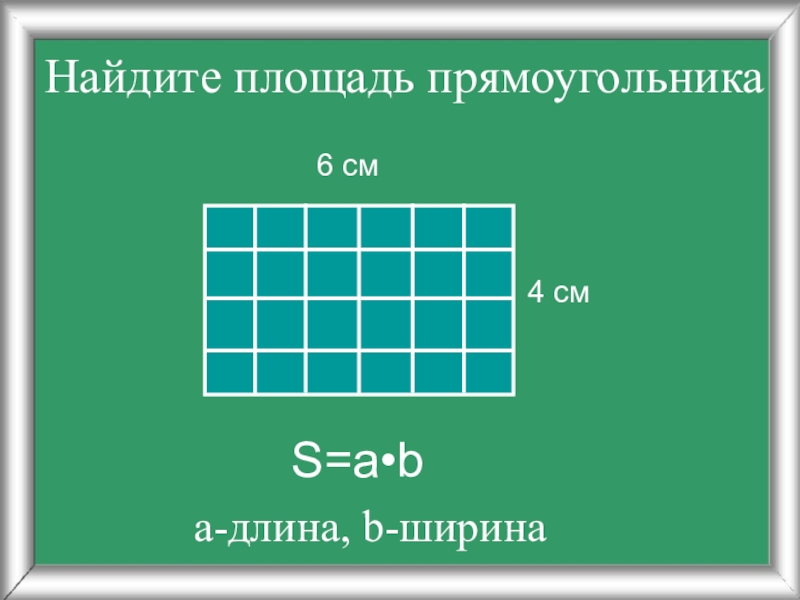 Найдите площадь прямоугольника 4 см  6 смS=a•bа-длина, b-ширина