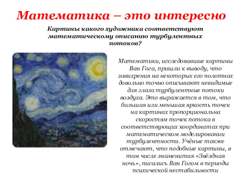Картины какого художника соответствуют математическому описанию турбулентных потоков?